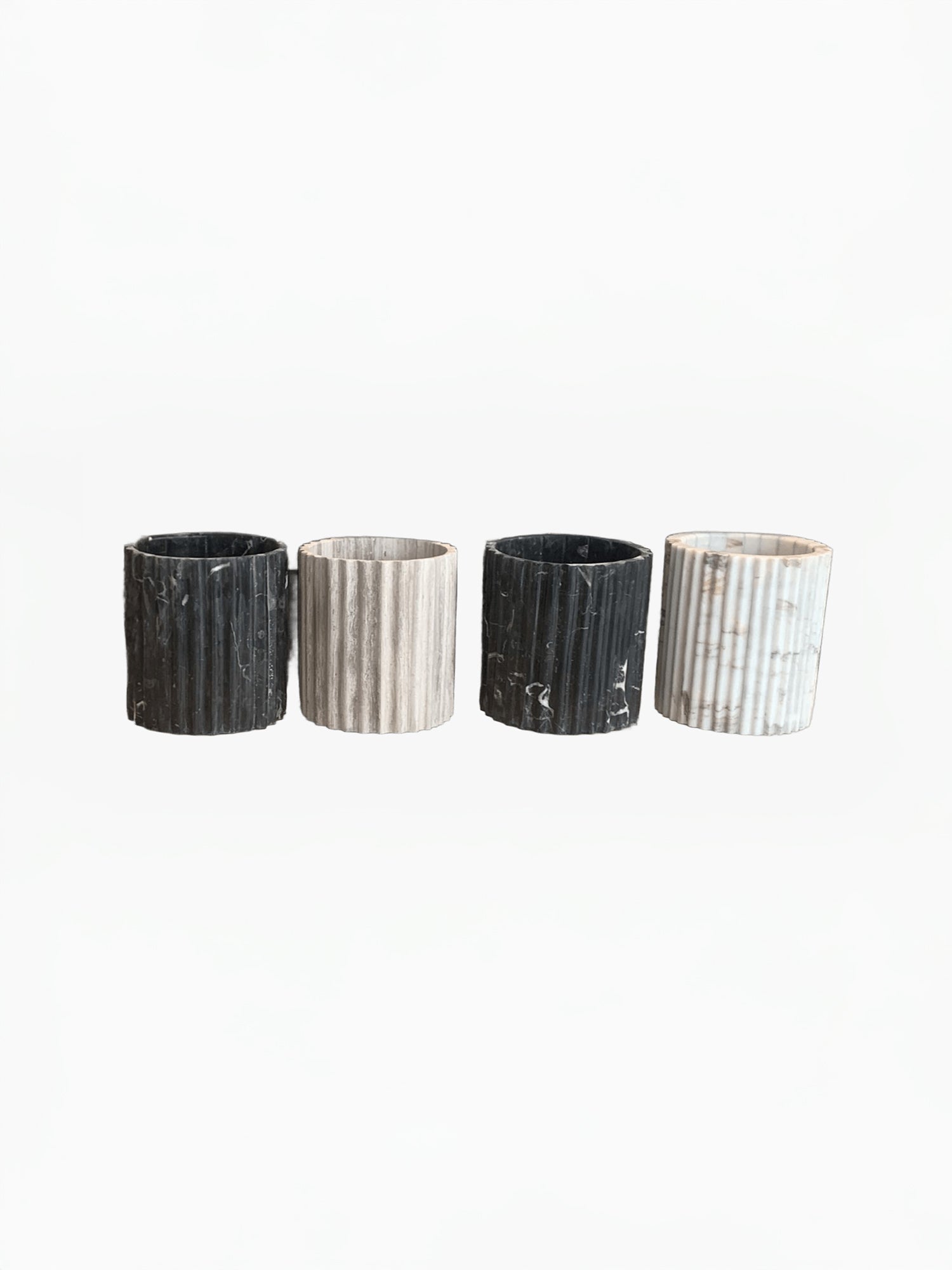 Cylinder marble bin with crevices.